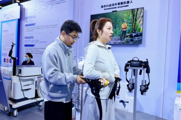 现场备受关注的AI运动外骨骼机器人,凭借AI步态算法实现自适应助力,为运动爱好者减轻腿部负担、高效保护关节,让跑者直观感受到前沿科技为运动健康带来的强大支撑,展现海尔智家在AI科技研发领域的硬核实力。