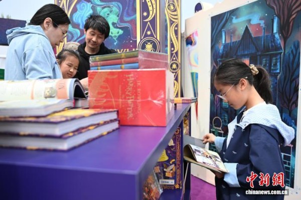 除了琳琅满目的新书好书,书市搭建的阅读场景也受到读者青睐。在位于北京朝阳公园的主展场,“哈利·波特与火焰杯”主题区不仅带来120多种英文原版书,还复刻了图书封面的烫金拱门,成为本次书市的限定打卡点。旧书新知专区设置“文影辉映——文学与电影的时空对话”专题展览,精选《雷雨》《骆驼祥子》等文学名作及其同名电影海报,通过近20组展品为读者开启文学与影像之间的深度对话。