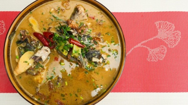 地道的仁沙黄辣丁,以极简食材烹出极致鲜味。原料选用鲜活、大小适中的黄辣丁,搭配老咸菜、一年陈猪油、泡姜、泡椒、胡椒等质朴辅料,以传统手法处理食材,最大程度锁住河鲜本味。其烹制工艺简捷高效,核心仅“一按、一切、一放”三步:生菜油与陈猪油混合炼香,炒香佐料后下入黄辣丁翻炒,注入清水大火煮沸,十余分钟后汤汁熬至奶白,鱼肉吸满汤汁,撒上葱花便香气四溢。成菜酸辣鲜香、肉质细嫩,老坛泡菜的酸爽与陈猪油的醇香交融,一口尽是渠溪河的鲜灵滋味。