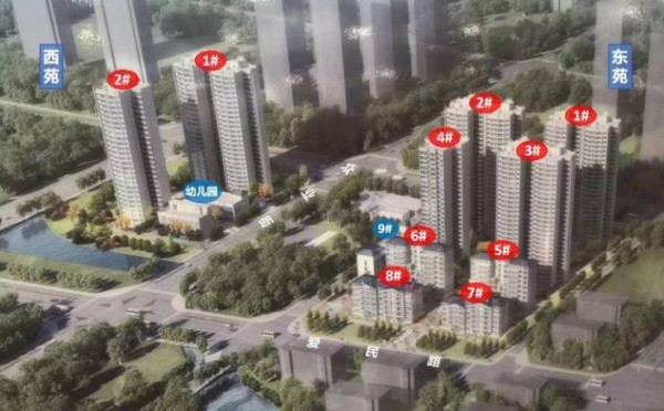 注:东苑1-4号楼为高层,5-8号楼为洋房,9号楼为后期综合用房(物业,商业)