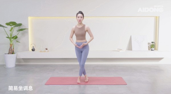 保持双膝并拢,收腹部,双肩放松,双手可以自然放至大腿上或腹部前侧。闭上眼睛,舒展眉心,放松呼吸,感受一整套练习带来的身体变化,下一次呼气时,慢慢睁开眼睛。
