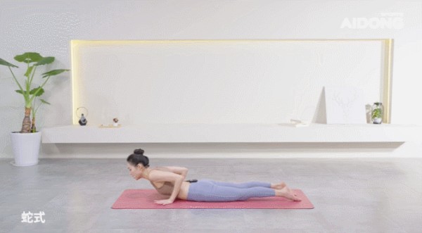 身体俯卧于地面,双臂向后伸展,紧贴身体两侧地面,抬头。吸气,双腿并拢向上抬,呼气,肩膀下沉,带动手臂上抬离开地面。感受背部、臀部、腿部的同时发力。每次保持5-6个呼吸。