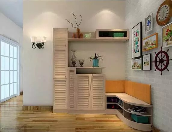 玄关处除了放鞋柜,还可以增加储物柜、展示柜的功能。鞋子以及雨伞、钥匙等常用物品可以放在这里。