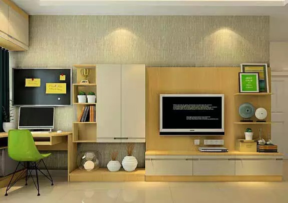 这款电视柜造型简约,特别之处在于左边拼搭了一个小书桌。定制时代,客户的实际需求是放在第一位的。