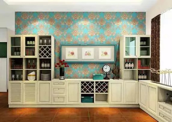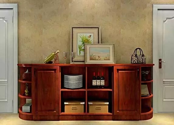 喜欢化繁为简的朋友,可以做这样比较矮的餐边柜。柜子里存放酒杯和好酒,上面还可以放一两副西洋画,凸显品位。