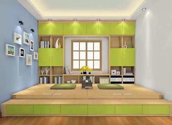平日里可以在这里看书,客人来时铺上垫子可以变身舒适的客房。最最重要的是,榻榻米下面还有好多柜子,真正做到了藏物于无形。