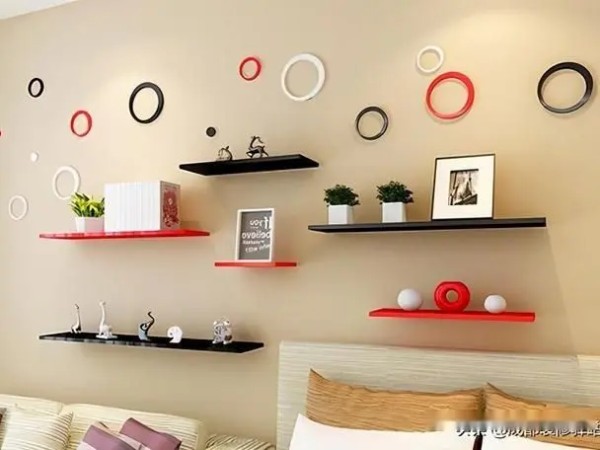 小小的几块板材,也是可以用来收纳的,不同长度的搁置板悬挂在墙面,不管是用来摆放展示品,还是书籍,都格外的有品位,美观与实用兼具。