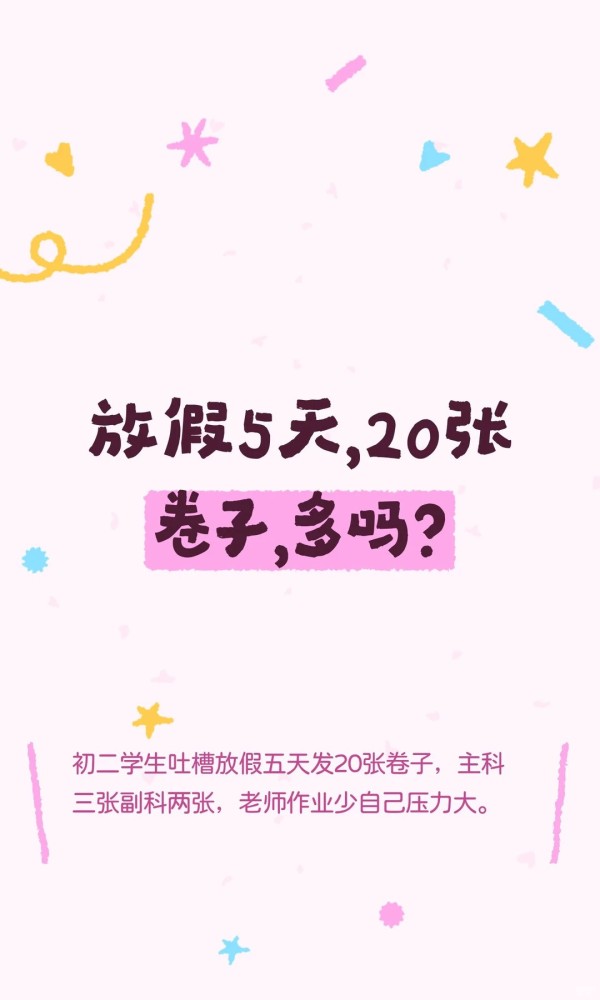 高铁清洁袋上50张试卷的留言引发热议后,也有其他学生晒出自己的春假作业,开启吐槽模式,“3天20张试卷到底多还是不多”?