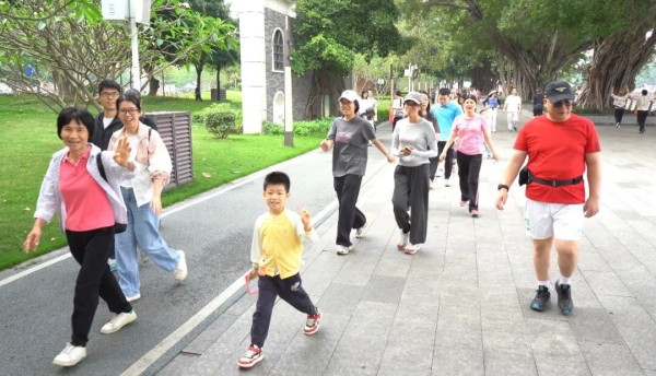 上午9时,随着出发信号响起,徒步队伍从下沙公园出发,沿江南路一路前行至江门演艺中心户外广场,全程约3.5公里。徒步路线绿意环绕、风光宜人。大家结伴而行、步履轻快,亲子携手、亲友相伴,一路欢声笑语,在河畔春光中感受城市之美,在轻松徒步中传递文明健康的生活理念。沿途设置了休息区与能量补给点,为大家免费提供饮用水。