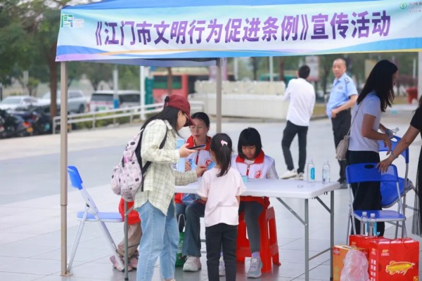 抵达终点江门演艺中心户外广场后,现场氛围更加热烈,文明暖心集市同步开放,一站式便民服务深受市民欢迎。广场上设置了《江门市文明行为促进条例》、文明交通、消防安全、反诈知识、应急救护、健康科普宣传等20个摊位。志愿者们耐心讲解、发放资料,引导市民学习文明知识、增强安全意识;义诊、义剪、小家电义修、传统中医理疗、消防装备展示等便民服务把实实在在的便利与温暖送到市民家门口。