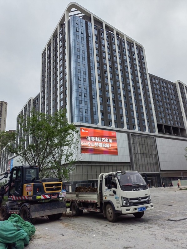 在西客站片区第四代万达广场施工现场,近十座塔吊同步作业,机械轰鸣不断,一派热火朝天的建设景象。据现场工作人员介绍,项目主体已施工至地上四层,预计2027年底建成投用。紧邻山东第一医科大学的银泰百货购物广场,楼体上悬挂起醒目的橙色“银泰百货”广告牌,正在全力招商。该项目以购物中心为核心,融合办公、酒店、文化艺术等多元业态,致力于打造一站式全生活体验中心。