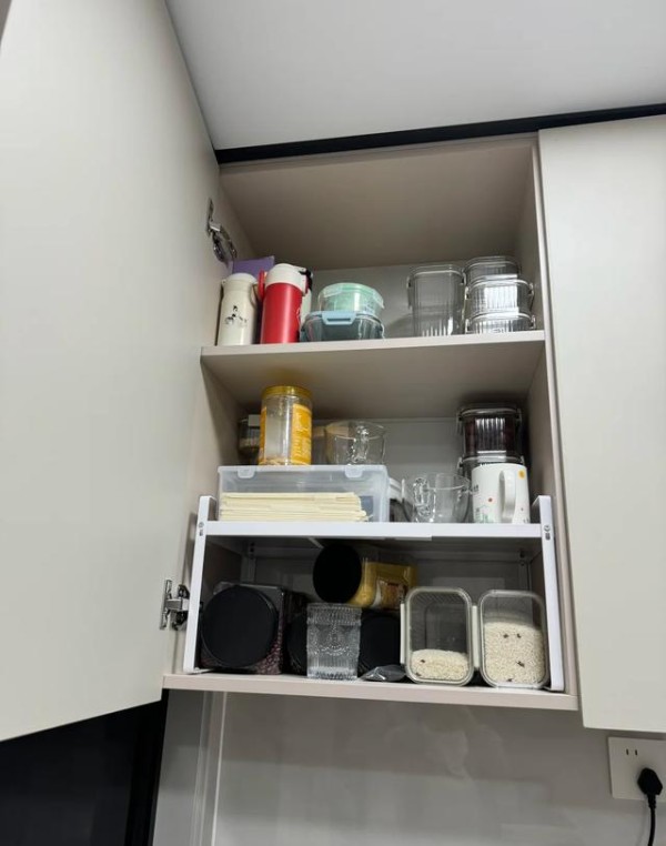 再高级一点,就算保留局部吊柜,也可以用那种下拉式的拉篮,轻轻一拉,高处的东西就自动降到眼前,这才是真正为人服务的设计。
