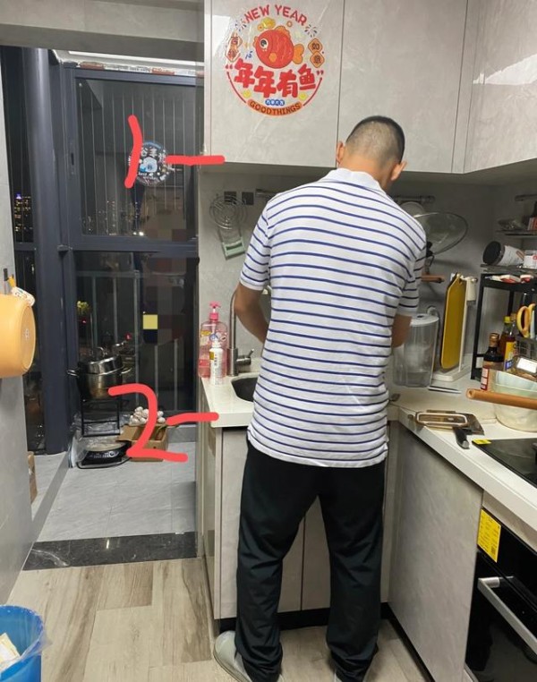 *2、一排柜子压下来,亮堂厨房变“山洞”。
