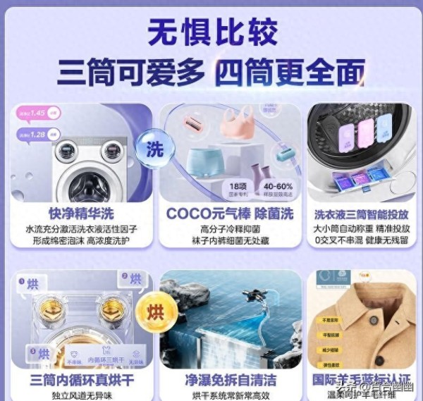 #可爱多一点,干爽多一点#从手摇洗衣到单筒滚筒,从双缸波轮到如今的三筒分区,洗衣机的每一次进化都在回应着人们对洁净与健康的更高追求。美的推出的“可爱多”三筒洗衣机,正是这一进程中的新标杆,它不仅仅是一台机器,更是一种精致生活理念的具象化表达。