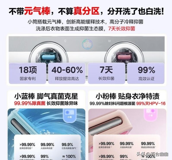 传统洗衣模式中,内外衣共处一筒、成人与婴儿衣物同洗的混洗现象颇为常见,潜藏的交叉污染风险往往被忽视。而分区洗护的核心价值,正在于精准地划分洁净空间,为不同属性、不同需求的衣物提供专属的洗涤方案。美的“可爱多”通过创新的三筒结构设计,将这一理念发挥到极致。其独立的婴童洗护专区,采用更柔和的水流、更严苛的抗菌材质和更适宜的温度,为娇嫩的宝宝肌肤筑起第一道健康防线;而内衣或小件衣物的专属筒,则能实现高效且私密的深层清洁。主筒则能从容应对日常大件衣物,彼此独立运行,互不干扰,真正实现了从“洗得干净”到“洗得安心、洗得科学”的跨越。