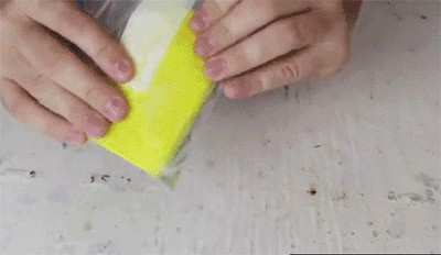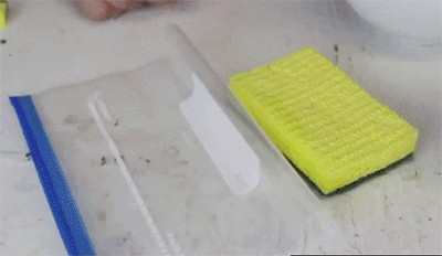 冰敷不需要准备大量的冰块,只要一块百洁布就行。准备一块百洁布,蘸满清水后放入密封袋中,密封后放冰箱急冻