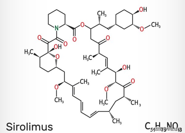 西罗莫司的分子结构,又称西罗莫司,用于抑制和调节免疫系统,治疗癌性肿瘤,帮助患者接受器官移植。它也用于长寿研究。Getty Images
