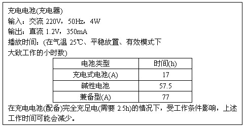 (3)充电电池在完全充电的情况下,一般可以播放多长时间?