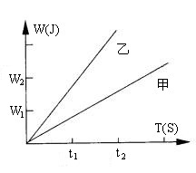 例2、如下图所示,电流对甲、乙两个用电器做功与所需时间的关系图像,由图可知,甲用电器的功率与乙用电器的功率相比是( )
