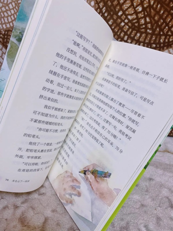 我们有所不同 你身在城市,我身在乡村 我们的快乐,不能互相体会 在大自然中我们流露着真实的情感 在一花一草中我们看到不一样的天地 我们也许破旧、不华丽、不便利…… 但是,这座山的美,这块田的美,你一辈子也没办法感受! 《米仓山下一块田》是一本作者用真情实感,以儿童视角写出的一本叙事清新的,感人肺腑的儿童散文集,用娓娓道来的文字描绘了她自己在乡村、在田间曾经的美好,用季节为时间点,通过春播、夏花、秋收、冬藏四个部分,以作者父亲外出打工、归家为时间轴,又生活、学習为主线,记录了大山里的生活、风物,真实反映了农村留守儿童丰富而又敏感的内心世界,在作者笔下,爱与被爱,贫穷与富裕,孤独与无助,家人与邻里,孩子和大人,人类与自然,详细的描写了外出打工的爸爸、代笔写信寄思、回赠的核桃、苞谷粪球、农具水田、米仓顶峰的风、层叠的红薯藤、转圈的河水……米仓山下的每一个孩子都是快乐的,是对生活抱有乐观态度的,是有所期盼的。米仓山上的故事像一幅画卷,在孩子纯真的瞳眸里徐徐展开,也给我们展现了大自然的一切!让我们去做简单的事情,如果用心去体悟、去发现,你会获得很多的人生感悟! 那座山,告诉我们什么是坚守,什么是谦卑 那块田,告诉我们什么是包容,什么是付出 那座山,那块田,告诉我们什么是陪伴,它们看着我从稚嫩走向成熟,看着我学会了等待、学会了在耐心中收获,大自然虽然不语,但它给与了我们蕞好的东西。 因为简单,所以更加还原 因为写的是孩子,所以童趣 因为写的是自然和农村,所以原汁原味 让我们通过阅读感同身受,通过阅读看到自然,也看到属于我们的人的一生,让我们明白在大山中、在大自然中,感受大自然的真实与美好,明白我们是如此的渺小,但是即使渺小的我们,仍然不抛弃不放弃,如一颗小草,不惧风雨,茁壮成长,向下扎根,向上生长,努力开出属于自己的蕞美的一朵花,照亮我们的世界,让我们自己化成笔,把爱写进生活,让生活回归自然!