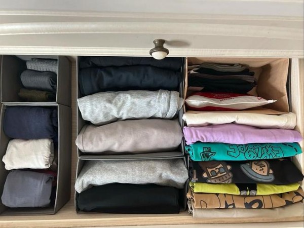 衣之毛衣类,宜采折叠之法,而后竖置抽屉或收纳箱内,如立书般依次排之,如此寻时能清晰也,不差乱他衣物也。至于羊毛羊绒材质之衣物,务必所为折叠,不可悬之,为慎防变形之状也。