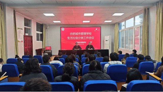 为积极响应上级关于垃圾分类的号召,营造绿色环保的校园氛围,合肥城市管理学校先后召开校级会议、班主任专题会议,成立工作领导小组,制定《校园垃圾分类实施方案》,明确职责分工,形成“学校统筹、部门协作、全员参与”工作机制。