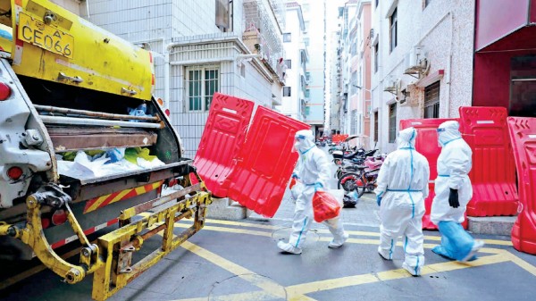 成立一个工作组。由区城市管理和综合执法局牵头,市生态环境局宝安管理局和石岩街道相关部门全程参与,组建垃圾清理转运专班,负责环境保洁、医废清理和垃圾清运。每天例会分析研判,编制“三区”环卫作业人员操作规范指引等文件,明确不同区域、部位、人员的作业规范标准和个人防护注意事项。