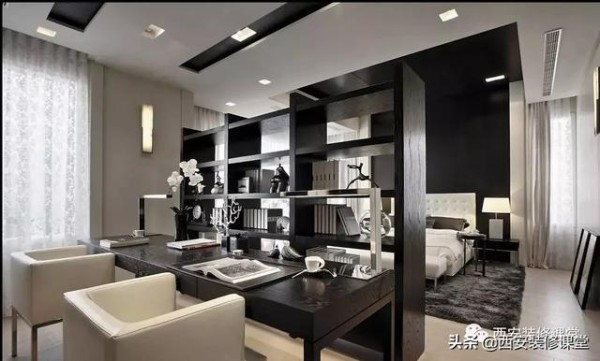 ▲如上图的豪宅卧室,普通家庭是望尘莫及的,所以能这样完美实现卧室和书房一体的卧室太少了《卧室与书房并存,隔断来实现》