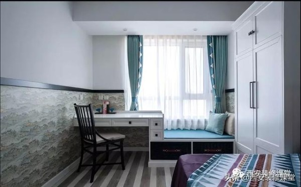 ▲实在没有空间,有个飘窗也是不错,可以借用飘窗定制简单书桌,满足化妆台和书桌的同时兼顾《落地窗+飘窗,做书桌最好》