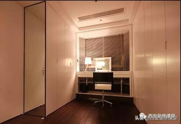 ▲还有一种常见做法,就是卧室床对面的角落,同样适用于化妆台和书桌的兼顾,同时有空间可以放置斗柜收纳