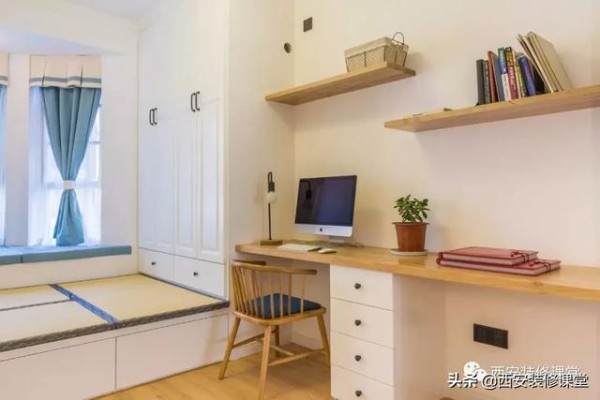 ▲最常见,也是最实用做法就是榻榻米衣柜和书桌的一体定制,因为是客房,必然是家里面积最小的空间,所以榻榻米定制能更合理利用空间,而且储物功能更大。这样客房平时不住人,完全可以作为在家办公的理想之地,仅次于单独的书房功能了《你的书房不美?其实只少了一个榻榻米》