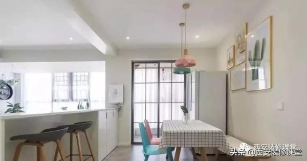 ▲横厅空间,利用客餐厅之间定制吧台书桌,满足在家办公的需求,当然如果家里人多,受干扰程度很大,这个需要前期合理安排。也可以兼顾家里的吧台休闲功能