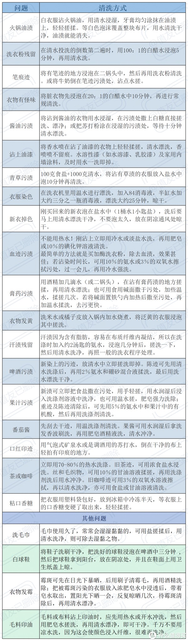 其实洗衣不一定只能用洗衣液,不同的污渍可以采用不同的清洗方法,我这里也给大家分享一下我自己常用的处理方式,主要是各种生活场景中容易沾到的污渍。