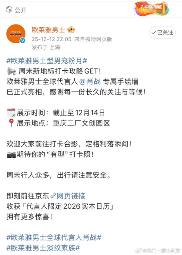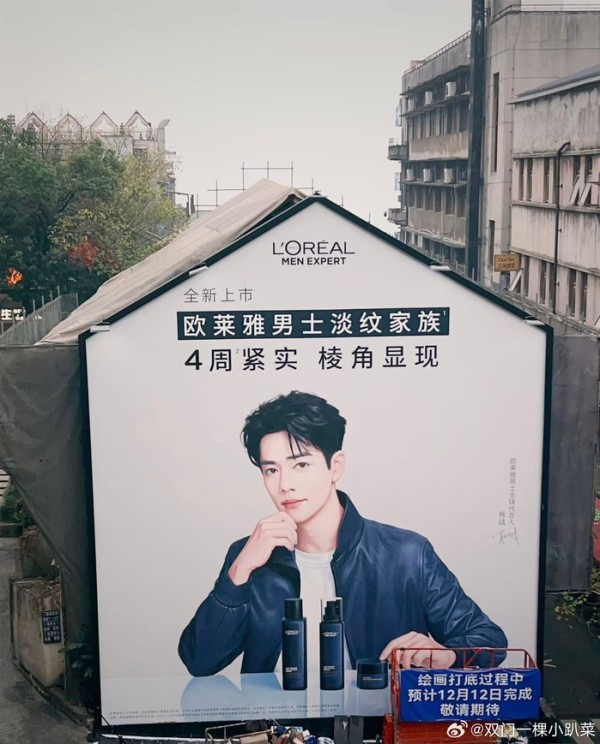 欧莱雅男士官宣肖战为全球代言人,重庆手绘艺术墙亮相