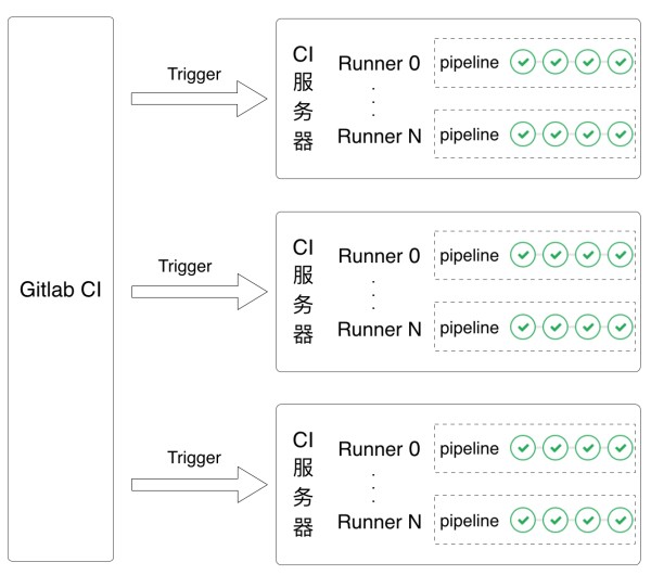Gitlab CI:Gitlab CI是GitLab Continuous Integration(Gitlab持续集成)的简称。Runner:Runner是Gitlab CI提供注册CI服务器的接口。Pipeline:可以理解为流水线,包含CI不同阶段的不同任务。Trigger:触发器,Push代码或者提交Merge Request等操作会触发相应的触发器以进入下一流程。该架构的优势是可扩展性强、可定制、支持并发。首先CI服务器可以任意扩展,除了专用的服务器可以作为CI服务器,普通个人PC机也可以作为CI服务器(缺点是性能比服务器差,任务执行时间较长);其次每个集成任务的Pipeline是支持可定制的,托管在MCI的集成项目可以根据自身需求定制与之匹配的Pipeline;最后,每个集成项目的任务执行是可并发的,因此各业务线间可以互不干扰的进行组件代码集成。