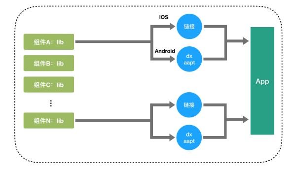 一次完整的组件集成流程包含两个阶段:组件库发版和向目标App工程集成。如下图所示: