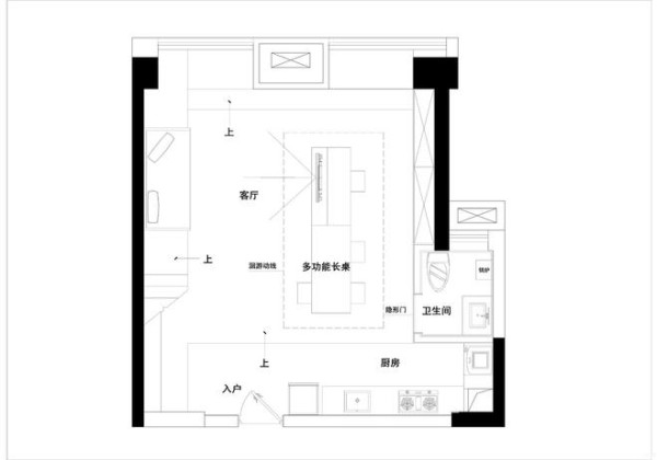 餐桌复合使用:可以做手工、办公、游戏。并且可以与厨房或者沙发上的伴侣有所互动。