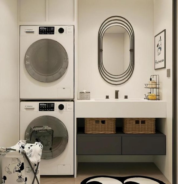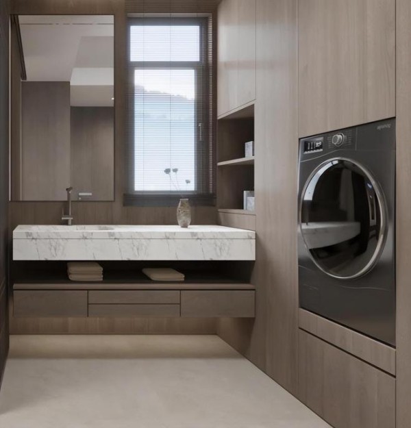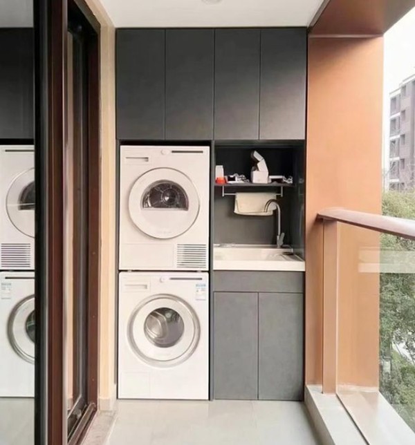家里只有一个阳台的家庭:如果你的阳台原本是用来放洗衣机的,那么把洗衣机搬到卫生间四分离区域,不仅能避免洗衣机噪音打扰客厅,还节省更多空间。