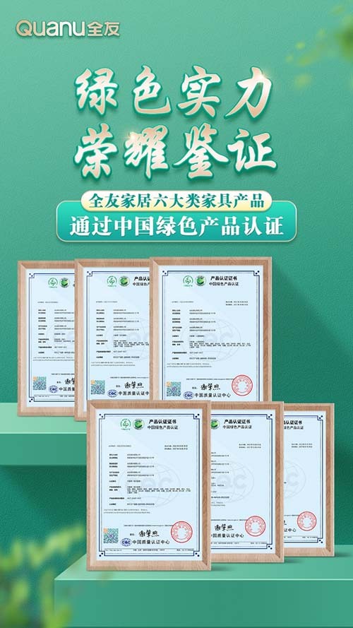 绿色实力 荣耀鉴证 全友六大类产品通过中国绿色产品认证