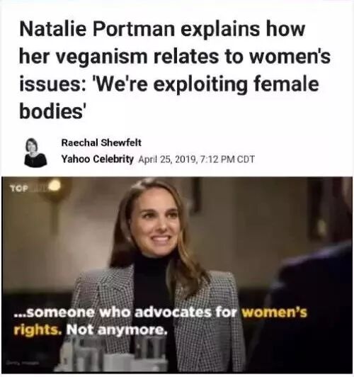 娜塔莉表示,她最开始成为素食者是为了保护动物和保护环境,而现在她意识到,素食也是女性权益的体现,因为牛奶和鸡蛋都是人类虐待雌性动物而得的。
