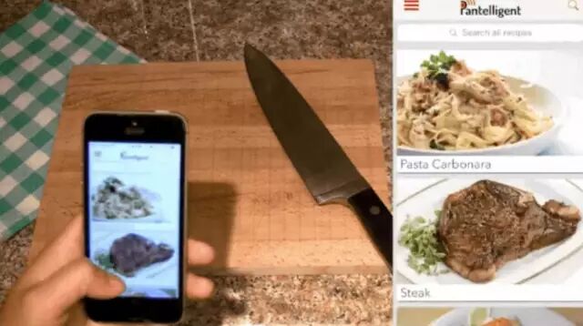 平底锅的手柄里内置的电子元件可通过蓝牙将平底锅的数据传输到手机上,APP可以告诉你平底锅的温度,什么时候加配料,什么时候搅拌等。它甚至可以对你的做法正确与否做出回应。所以你要做的就是按照APP告知的步骤操作即可。之所以平底锅能做到这样精准,归功于一项专利技术,它可以精确地测量出锅面温度。
