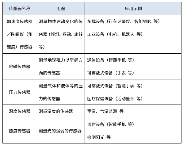 检测各种情况所必不可少的是“传感器”。这些传感器可以大致分为测量周围环境状态的“环境传感器”和检测运动变化的“运动传感器”。
