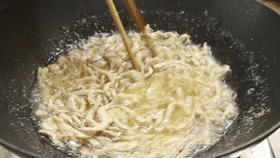炒的时候,热锅凉油下锅,油量多一些更不容易粘锅,大概肉丝变色之后就可以出锅或者放入其他配菜翻炒,最后进行调味。