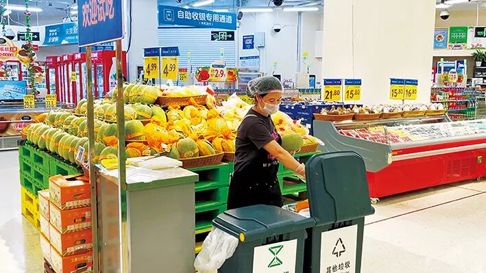 为做好源头减量,沃尔玛对内推进无纸化办公,对外严禁使用一次性塑料购物袋,全部改为可降解环保购物袋,鼓励顾客自带或购买可重复使用的环保袋。此举不但有效减少一次性塑料袋的使用,实现从源头上减量,而且让市民潜移默化地把环保理念带回家。厨余垃圾更细化
