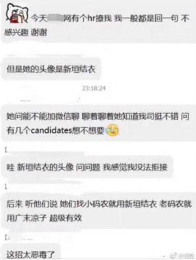 她认为,在招聘的整个过程中,HR的工作主要是在前期沟通阶段,所以要尽可能展现出专业、接地气的style,不过她也承认现在招聘码农不太容易,活用头像表情包或头像只是权宜之计。