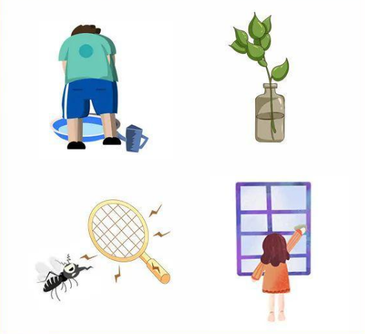 清除各种积水和积水容器,水培植物每隔七天换水洗瓶,控制蚊虫孳生,房间适时安装纱门纱窗。