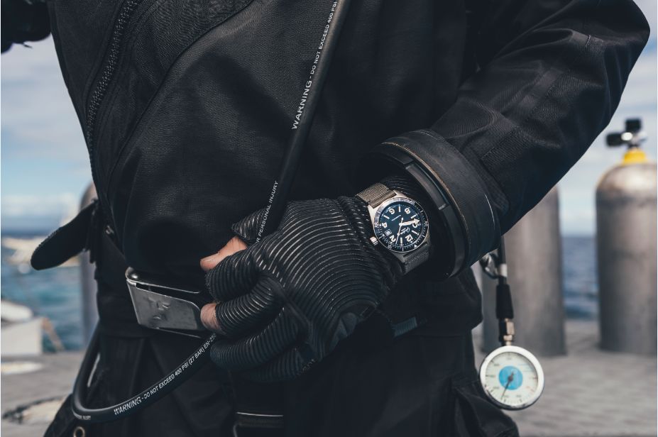 通过DIN 8306和ISO6425双重标准检验,出色防水性能与可靠抗震效果,同时防眩目蓝宝石玻璃表镜的出色可视性助力安全的潜水体验。