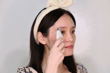 7、在迎香穴两侧轻压3秒,{ 默上数1.2.3.}再轻放。