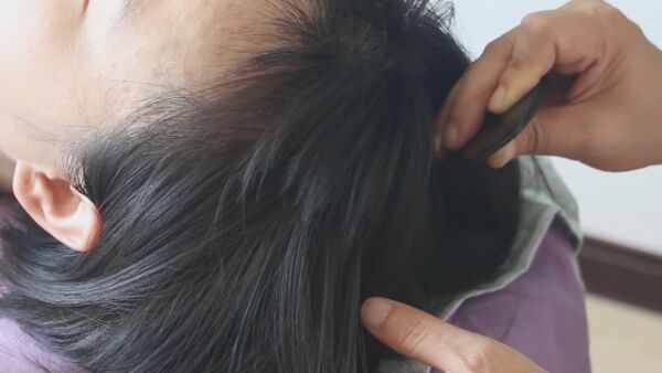 刮痧是传统的中医物理疗法,现在的头部刮痧治疗方法是用有活血润养功效的天然牛角做成的刮痧板,根据顾客的情况,刺激头部相关穴位,疏通头部经络。如刺激风池穴有利于疏通脑部神经,减少疲劳;刺激头窍阴穴可起到淋巴排毒功效;刺激玉枕穴有利于给大脑补充氧分,减轻压力等。