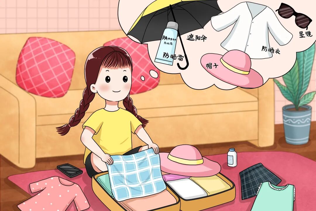 ◆ 首先要做好防护工作,外出前30分钟涂抹防晒霜,紫外线强烈时建议采用撑伞、穿长袖衣物等物理防晒方法;